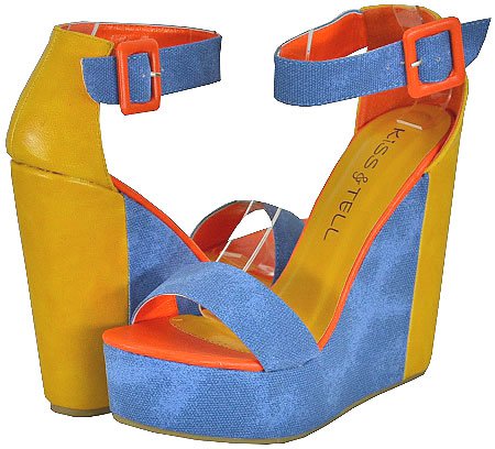 This women's sandal will steal the show with its bold stand out look featuring a cupped heel and wide straps around the ankle and across the vamp on a tall platform wedge Heels 5" Platform 1.5"Kiss&Tell Ava-02 Blue Women Wedge Sandals, 10 M US Review